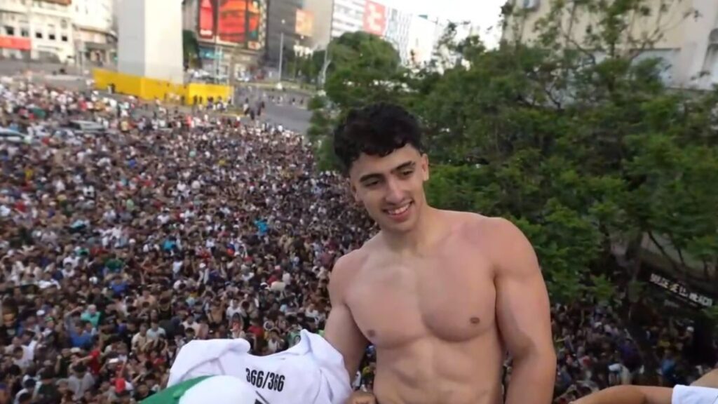 Lo que me sorprende de estos fenómenos digitales, que con el tiempo impactan en la vida real, es su masividad. El evento de Arias reunió a miles de personas frente al obelisco, como si fuera un partido de fútbol de primera, solo para verlo hacer dominadas. Más de 370.000 usuarios seguían la transmisión en vivo, un número que habría sido impensado hace algunos años para algo tan específico como ver a alguien colgarse de una barra.